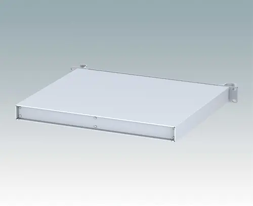 Boitiers polyvalents 19” avec une plaque avant en aluminium anodisé et 2 poignées ergonomiques en face avant. Le corps du boitier est constitué d'un couvercle supérieur solide avec une plaque inférieure et un panneau arrière amovibles. La partie inférieure est pourvue de trous facilitant le montage de PCB ou de la plaque de montage (en accessoire). Les différentes parties sont munies de vis de mise à la terre M4 pour la sécurité électrique.