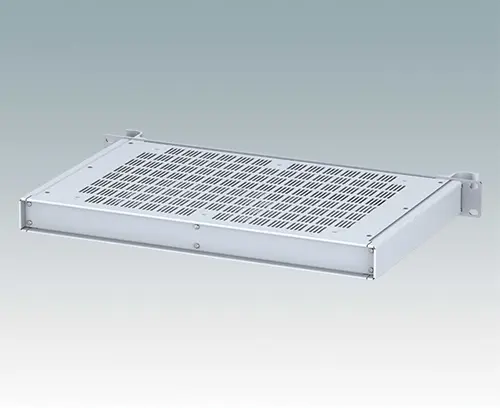 Boitiers polyvalents 19” avec une plaque avant en aluminium anodisé et 2 poignées ergonomiques en face avant. Le corps du boîtier est composé de deux panneaux latéraux avec une partie supérieure, inférieure et arrière amovible. La partie inférieure est pourvue de trous facilitant le montage de PCB ou de la plaque de montage (en accessoire). Les différentes parties sont munies de vis de mise à la terre M4 pour la sécurité électrique.