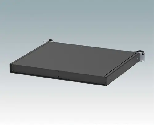 Boitiers polyvalents 19” avec une plaque avant en aluminium anodisé et 2 poignées ergonomiques en face avant. Le corps du boîtier est composé de deux panneaux latéraux avec une partie supérieure, inférieure et arrière amovible. La partie inférieure est pourvue de trous facilitant le montage de PCB ou de la plaque de montage (en accessoire). Les différentes parties sont munies de vis de mise à la terre M4 pour la sécurité électrique.