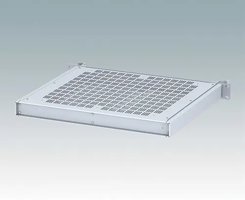 Boitiers polyvalents 19” avec une plaque avant en aluminium anodisé et 2 poignées ergonomiques en face avant. Le corps du boîtier est composé de deux panneaux latéraux avec une partie supérieure, inférieure et arrière amovible. La partie inférieure est pourvue de trous facilitant le montage de PCB ou de la plaque de montage (en accessoire). Les différentes parties sont munies de vis de mise à la terre M4 pour la sécurité électrique.
