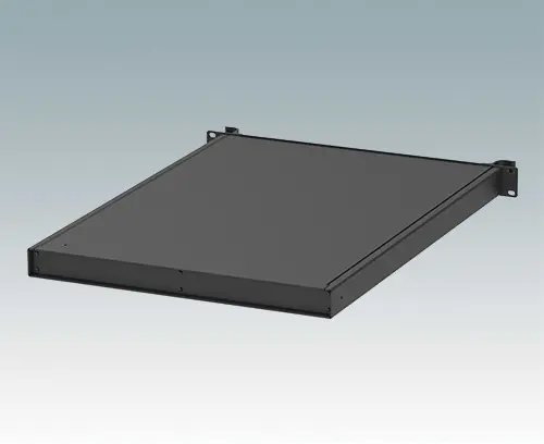 Boitiers polyvalents 19”, 24 pouces de profondeur, avec une plaque avant en aluminium peint en noir et 2 poignées ergonomiques en face avant. Le corps du boîtier est composé de deux panneaux latéraux avec une partie supérieure, inférieure et arrière amovible. La partie inférieure est pourvue de trous facilitant le montage de PCB ou de la plaque de montage (en accessoire). Les différentes parties sont munies de vis de mise à la terre M4 pour la sécurité électrique.