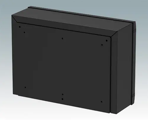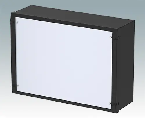 Boitier en aluminium modernes pour des applications d'intérieur. Accès à l'électronique sans barrière pendant l'installation au mur. Design élégant avec bandeaux frontaux, partie supérieure et panneau arrière en forme L moulés sous pression. Plaque avant et plaque support à commander séparément.