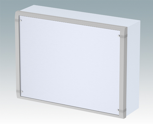 Boitier en aluminium modernes pour des applications d'intérieur. Accès à l'électronique sans barrière pendant l'installation au mur. Design élégant avec bandeaux frontaux, partie supérieure et panneau arrière en forme L moulés sous pression. Plaque avant et plaque support à commander séparément.