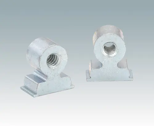 Fixation filetée à 90 degrés insérée dans un trou rectangulaire du panneau..