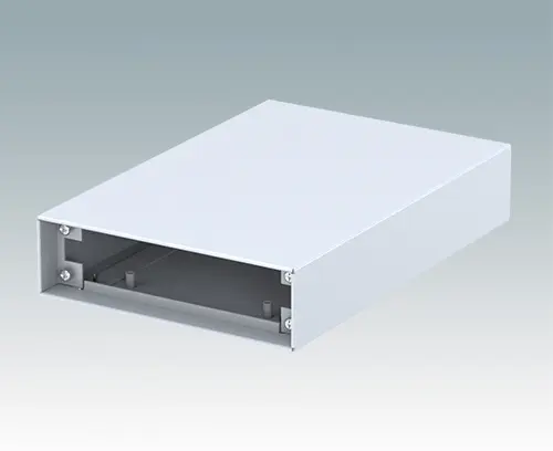 Boitier d’instrument modern pour les applications de table et portables. Les panneaux supérieures et inférieures en aluminium plié sont assemblés au moyen de vis de fixation cachées en sousface. Les ouvertures des panneaux avant et arrière sont encastrées de 8 mm et 14 mm sur les faces opposées. Panneaux avant et arrière à commander séparément.