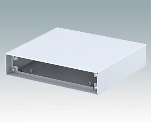 Boitier d’instrument modern pour les applications de table et portables. Les panneaux supérieures et inférieures en aluminium plié sont assemblés au moyen de vis de fixation cachées en sousface. Les ouvertures des panneaux avant et arrière sont encastrées de 8 mm et 14 mm sur les faces opposées. Panneaux avant et arrière à commander séparément.