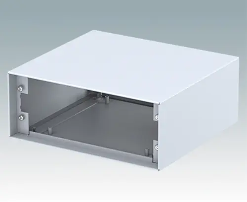 Boitier d’instrument modern pour les applications de table et portables. Les panneaux supérieures et inférieures en aluminium plié sont assemblés au moyen de vis de fixation cachées en sousface. Les ouvertures des panneaux avant et arrière sont encastrées de 8 mm et 14 mm sur les faces opposées. Panneaux avant et arrière à commander séparément.