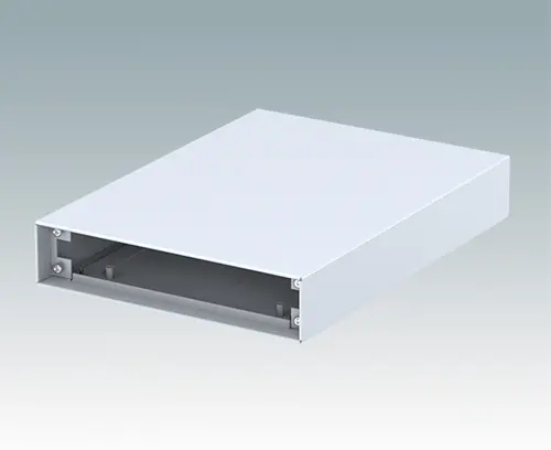 Boitier d’instrument modern pour les applications de table et portables. Les panneaux supérieures et inférieures en aluminium plié sont assemblés au moyen de vis de fixation cachées en sousface. Les ouvertures des panneaux avant et arrière sont encastrées de 8 mm et 14 mm sur les faces opposées. Panneaux avant et arrière à commander séparément.
