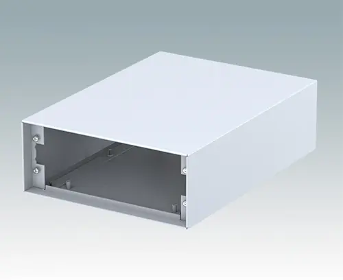 Boitier d’instrument modern pour les applications de table et portables. Les panneaux supérieures et inférieures en aluminium plié sont assemblés au moyen de vis de fixation cachées en sousface. Les ouvertures des panneaux avant et arrière sont encastrées de 8 mm et 14 mm sur les faces opposées. Panneaux avant et arrière à commander séparément.