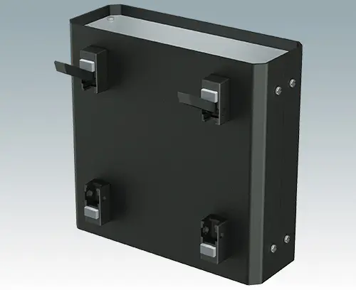 Fourniture Partie supérieure, plaque inférieure, plaque avant 19”, plaque arrière, poignées, M3 x 8 mm (x4), M3 x 8 mm (x4), Écrou et rondelle de joint M4 (x4). Fourni entièrement assemble.
