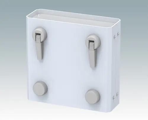 Pieds basculables élégants et modernes pour équiper tout type de boitier plastique ou métallique. Assemblage en quatre parties avec le corps du pied en ABS, un capuchon en TPE antidérapant,  l’élément basculable avec une rotation de 120° et des vis auto-taraudeuse. Convient pour des épaisseurs de paroi de maximum 3 mm avec les vis fournies (possibilités de fournir des vis plus longues pour des épaisseurs de paroi supérieures). Il suffit de percer trois trous par pied dans le panneau du boitier - voir les plans pour les détails de l’usinage.