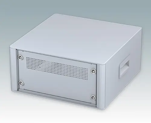 Boitiers 10.5" modernes pour instruments. Conçus pour installer des tiroirs 3U (42HP), des châssis et panneaux avant. Conforme aux normes DIN 41494 et IEC 297. Cadres frontaux et arrière élégants sur le corps de boitier en aluminium. Des cache-vis encliquetables à l'avant et l'arrière masquent les vis de fixation du boitier, et confèrent ainsi à l'ensemble une apparence très professionnelle. Toutes les plaques de boitier sont munies de piliers filetés M4 pour les connexions de mise à la terre. Le boitier comprend une plaque arrière, deux poignées latérales en ABS et quatre pieds ronds en plastique avec caoutchouc antiglisse. La base et la plaque arrière sont dotées de fentes d'aération. Barrettes de support de sub-rack/châssis.