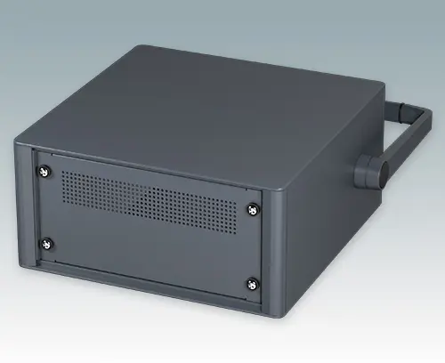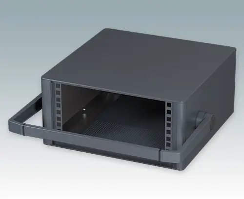 Boitiers 10.5" modernes pour instruments. Conçus pour installer des tiroirs 3U (42HP), des châssis et panneaux avant. Conforme aux normes DIN 41494 et IEC 297. Cadres frontaux et arrière élégants sur le corps de boitier en aluminium. Des cache-vis encliquetables à l'avant et l'arrière masquent les vis de fixation du boitier, et confèrent ainsi à l'ensemble une apparence très professionnelle. Toutes les plaques de boitier sont munies de piliers filetés M4 pour les connexions de mise à la terre. Le boitier comprend une plaque arrière, poignée étrier et quatre pieds ronds en plastique avec caoutchouc antiglisse. La base et la plaque arrière sont dotées de fentes d'aération. Barrettes de support de sub-rack/châssis.
