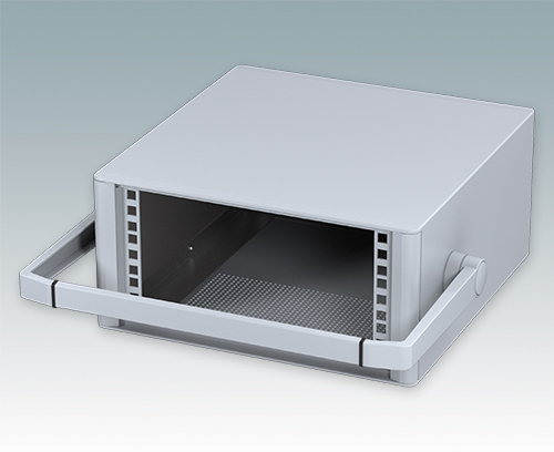 Boitiers 10.5" modernes pour instruments. Conçus pour installer des tiroirs 3U (42HP), des châssis et panneaux avant. Conforme aux normes DIN 41494 et IEC 297. Cadres frontaux et arrière élégants sur le corps de boitier en aluminium. Des cache-vis encliquetables à l'avant et l'arrière masquent les vis de fixation du boitier, et confèrent ainsi à l'ensemble une apparence très professionnelle. Toutes les plaques de boitier sont munies de piliers filetés M4 pour les connexions de mise à la terre. Le boitier comprend une plaque arrière, poignée étrier et quatre pieds ronds en plastique avec caoutchouc antiglisse. La base et la plaque arrière sont dotées de fentes d'aération. Barrettes de support de sub-rack/châssis.