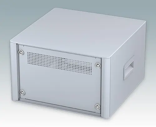 Boitiers 10.5" modernes pour instruments. Conçus pour installer des tiroirs 4U (42HP), des châssis et panneaux avant. Conforme aux normes DIN 41494 et IEC 297. Cadres frontaux et arrière élégants sur le corps de boitier en aluminium. Des cache-vis encliquetables à l'avant et l'arrière masquent les vis de fixation du boitier, et confèrent ainsi à l'ensemble une apparence très professionnelle. Toutes les plaques de boitier sont munies de piliers filetés M4 pour les connexions de mise à la terre. Le boitier comprend une plaque arrière, deux poignées latérales en ABS et quatre pieds ronds en plastique avec caoutchouc antiglisse. La base et la plaque arrière sont dotées de fentes d'aération. Barrettes de support de sub-rack/châssis.
