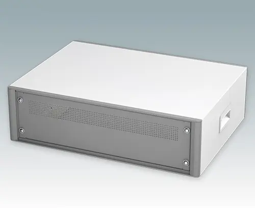 Le boitier comprend une plaque arrière, deux poignées latérales en ABS et quatre pieds ronds en plastique avec caoutchouc antiglisse. La base et la plaque arrière sont dotées de fentes d'aération. Barrettes de support de sub-rack/châssis.