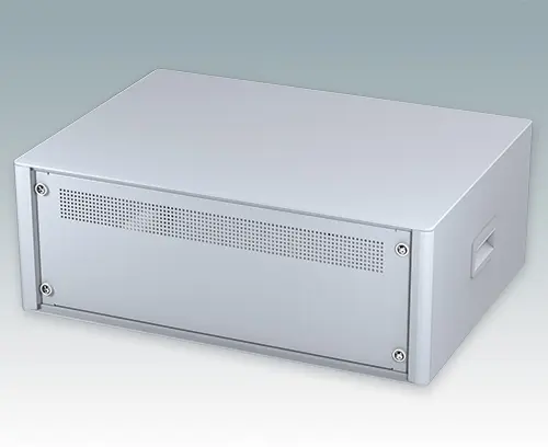 Le boitier comprend une plaque arrière, deux poignées latérales en ABS et quatre pieds ronds en plastique avec caoutchouc antiglisse. La base et la plaque arrière sont dotées de fentes d'aération. Barrettes de support de sub-rack/châssis.
