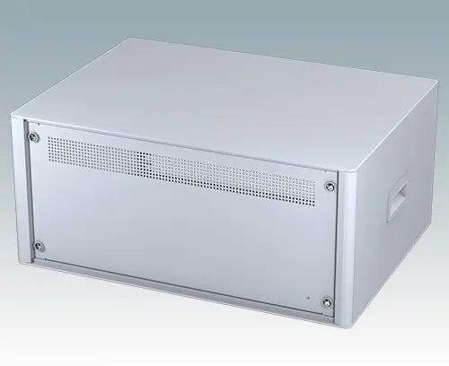 Le boitier comprend une plaque arrière, deux poignées latérales en ABS et quatre pieds ronds en plastique avec caoutchouc antiglisse. La base et la plaque arrière sont dotées de fentes d'aération. Barrettes de support de sub-rack/châssis.