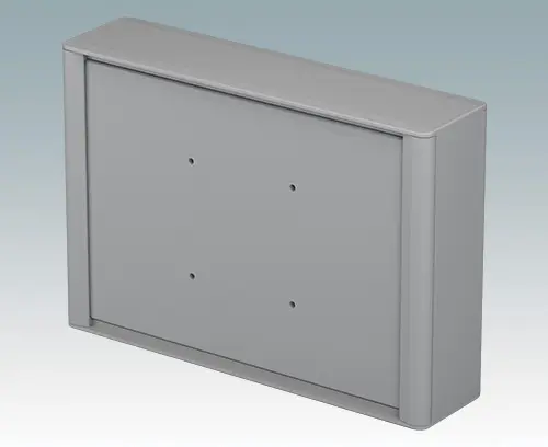 Boitier d'instruments en aluminium moderne et très esthétique pour le montage d'écrans, d'écrans tactiles et d'électronique IHM. Des points de montage VESA MIS-D 100 sont fournis sur le panneau arrière pour monter l'unité sur un bras de commande VESA standard ou un support de montage. Des cadres avant et arrière élégants moulés sous pression sont montées sur le corps du boitier en aluminium. Des caches-vis emboîtables à l'avant et à l'arrière masquent toutes les vis de montage, donnant un aspect très professionnel. Le panneau de base situé en dessous offre un espace pour l'entrée des câbles. Des piliers de montage M3 PCB sont fournis à l'intérieur. Les profilés d'assemblage disposent également de trous de montage M3 et de rails de guidage pour le montage des plaques internes. Des piliers filetés M4 pour les connexions de mise à la terre sont presents sur toutes les parties du boitier ; certains piliers peuvent également être utilisés avec des sangles de maintien pour maintenir les panneaux avant/arrière lors de l'entretien. Les panneaux avant sont vendus séparément. Les accessoires comprennent un kit de montage mural, un support de montage sur mat et une plaque de montage interne.