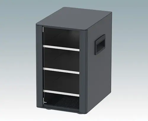Technomet TX124S Boitiers d'instrumentation en aluminium de type tour, extrêmement esthétiques. Leur faible encombrement optimise l'espace de bureau ou de travail. Design moderne et épuré, sans vis apparentes. L'intégration parfaite des cadres avant et arrière moulés sous pression, combinée aux caches clipsables, offre une finition impeccable. Trous de ventilation dans la base et la plaque arrière. Châssis interne permettant d'accueillir trois ou quatre étagères (accessoires) pour circuits imprimés et assemblages. Goujons de mise à la terre M4 sur chaque face. Livré avec poignées latérales et pieds antidérapants en ABS. Panneau avant, etagères et guide-cartes en accessoires. Commandez votre versionentièrement personnalisée.