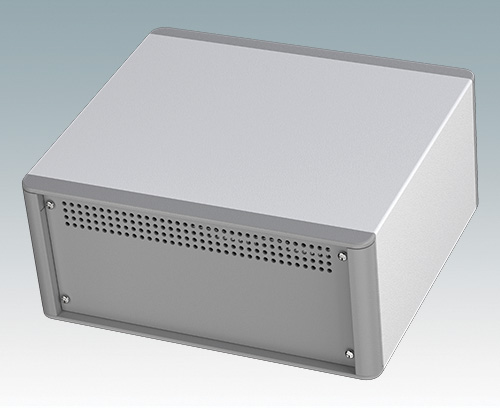 Boitiers pupitres modernes et élégants pour électronique de table. Cadres frontaux et arrière élégants sur le corps de boitier en aluminium. Des cache-vis encliquetables à l'avant et l'arrière masquent les vis de fixation du boitier et celles de la plaque avant, et confèrent ainsi à l'ensemble une apparence très professionnelle. La base du châssis interne pré-assemblé comprend quatre pieds de montage M3 pour carte de circuits imprimés. Le châssis interne peut aussi être équipé de 5 cartes de circuits imprimés grâce au guide-carte auxiliaire M6490020 (commander 2 guides par carte).