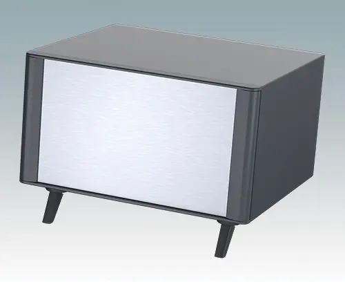 Le boitier comprend une plaque arrière, et quatre pieds dont deux basculables. La base et la plaque arrière sont dotées de fentes d'aération. Les plaques avant se commandent séparément.