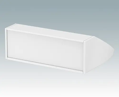 Boitier pupitre avec partie pour éléments de commande ergonomique pour les applications de table ou murales. Boitier aluminium prémonté avec plaque inférieure amovible. Plaque avant en accessoire.