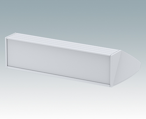 Boitier pupitre avec partie pour éléments de commande ergonomique pour les applications de table ou murales. Boitier aluminium prémonté avec plaque inférieure amovible. Plaque avant en accessoire.